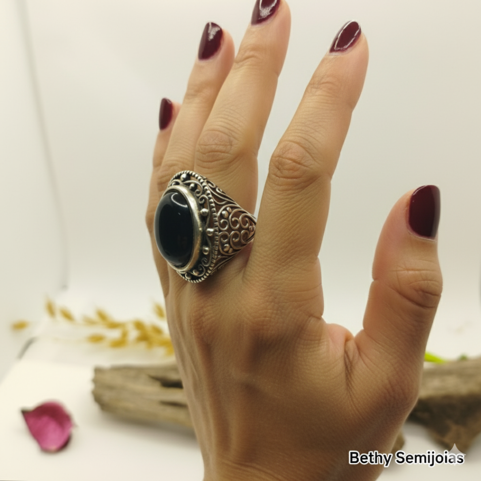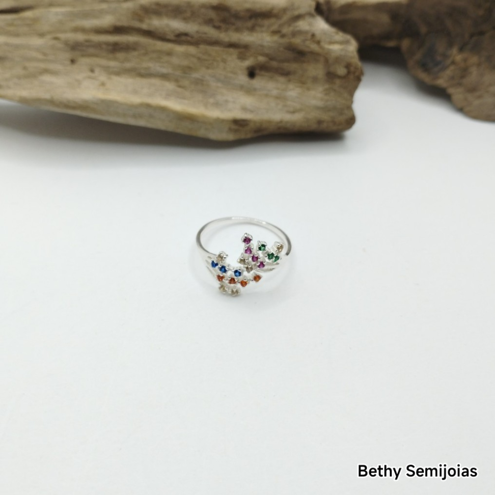 Anel prata Bali flor 17