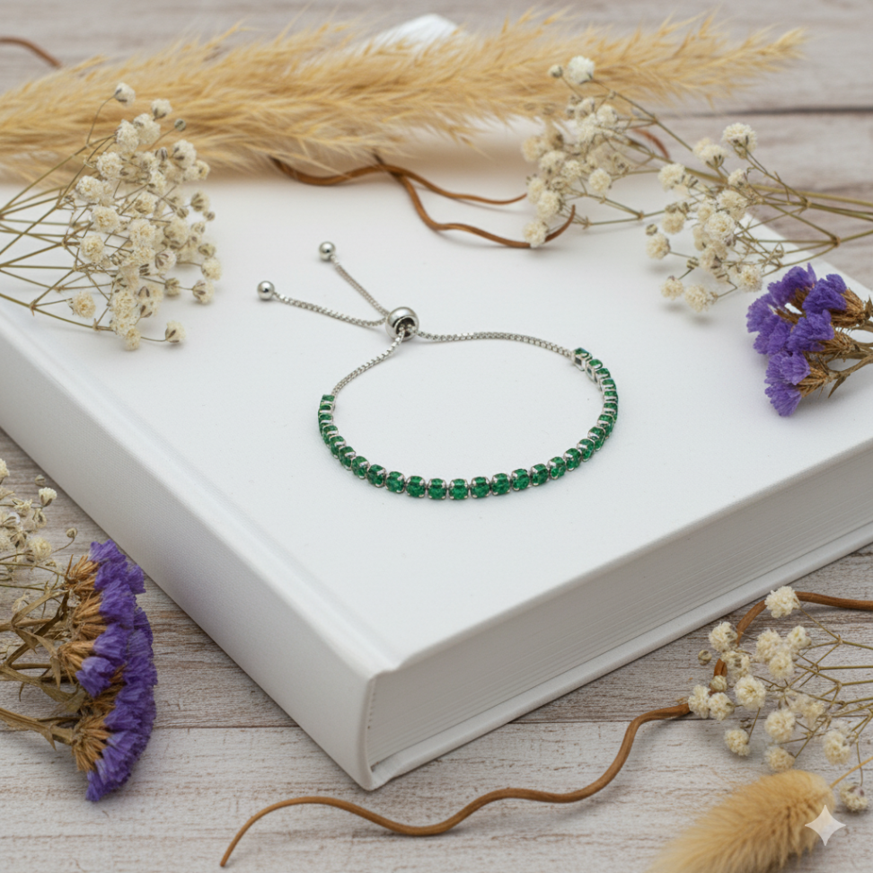 Pulseira Riviera Verde regulável em ródi...