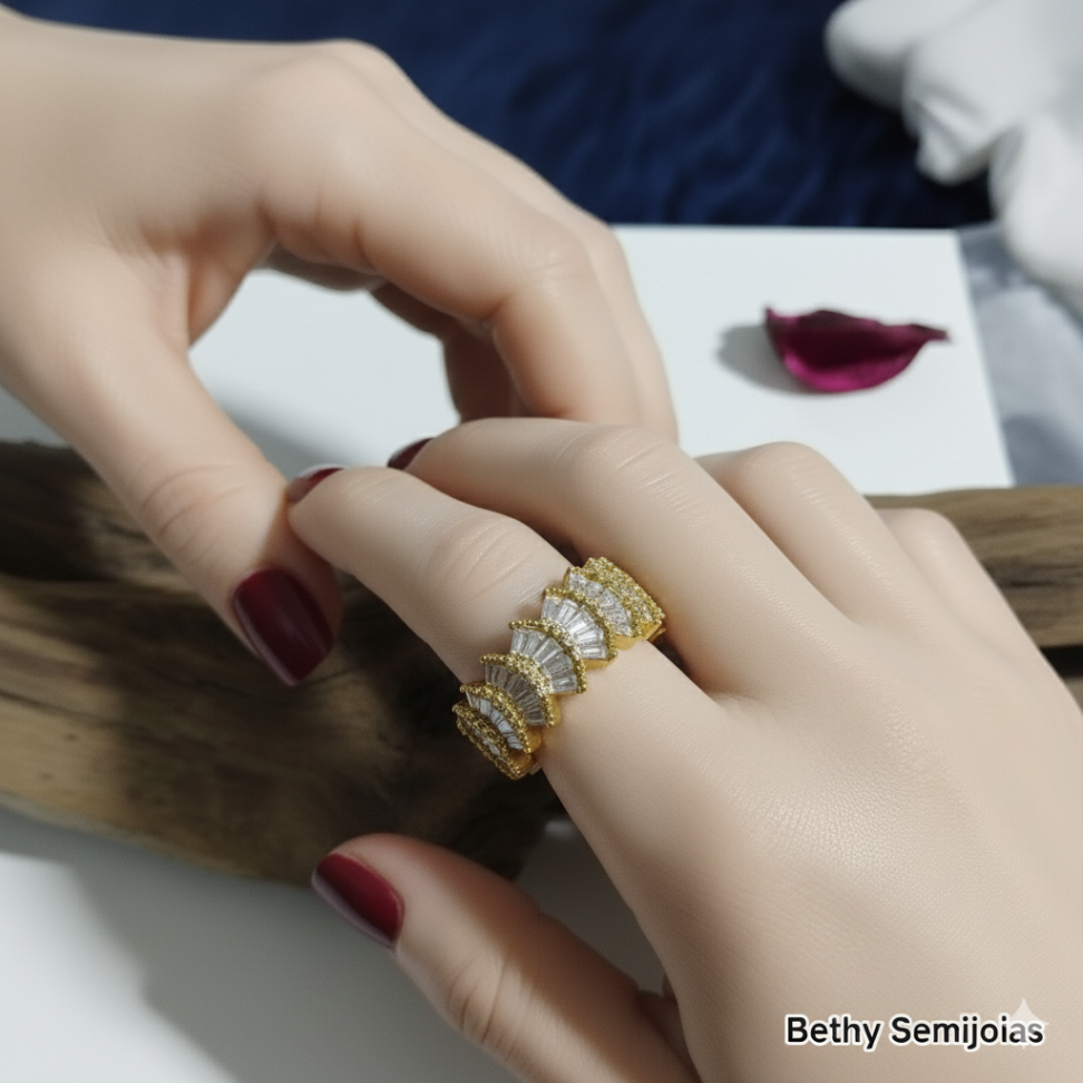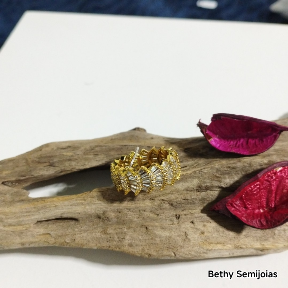 Deslumbre-se com o Anel Concha com Zircônias, um adereço delicadamente folheado a ouro. A beleza única dos cristais zircônias e inspiração marinha fundem-se nesta joia, criando uma peça perfeita para acrescentar um toque elegante e sofisticado ao seu visual. TAM. 20 / 24