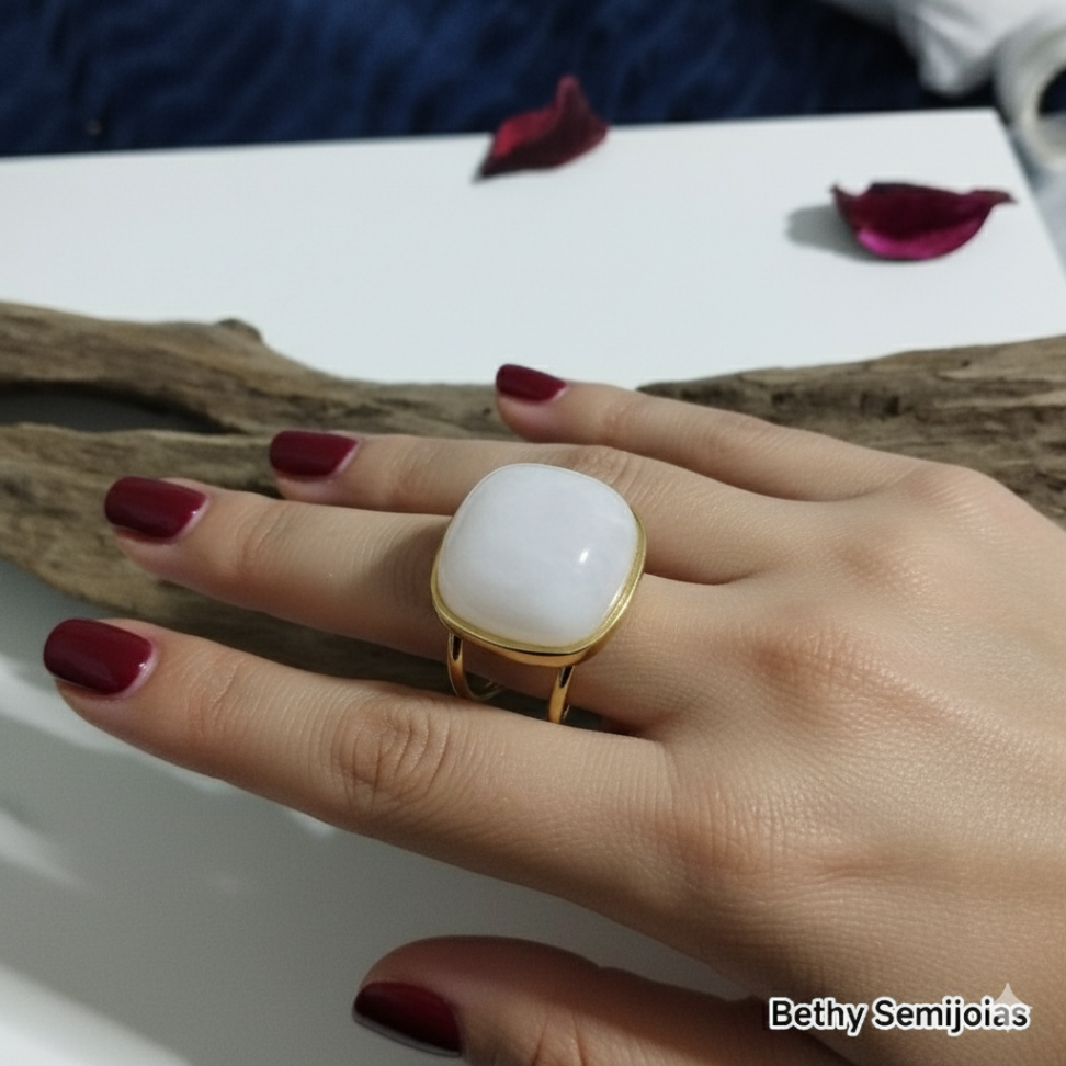 Mergulhe no místico com nosso Anel Folheado com Pedra da Lua. Elegantemente trabalhado em folheado a ouro, este anel destaca uma pedra da lua cativante. Perfeito para trazer um toque de luxo e sofisticação ao seu estilo diário.