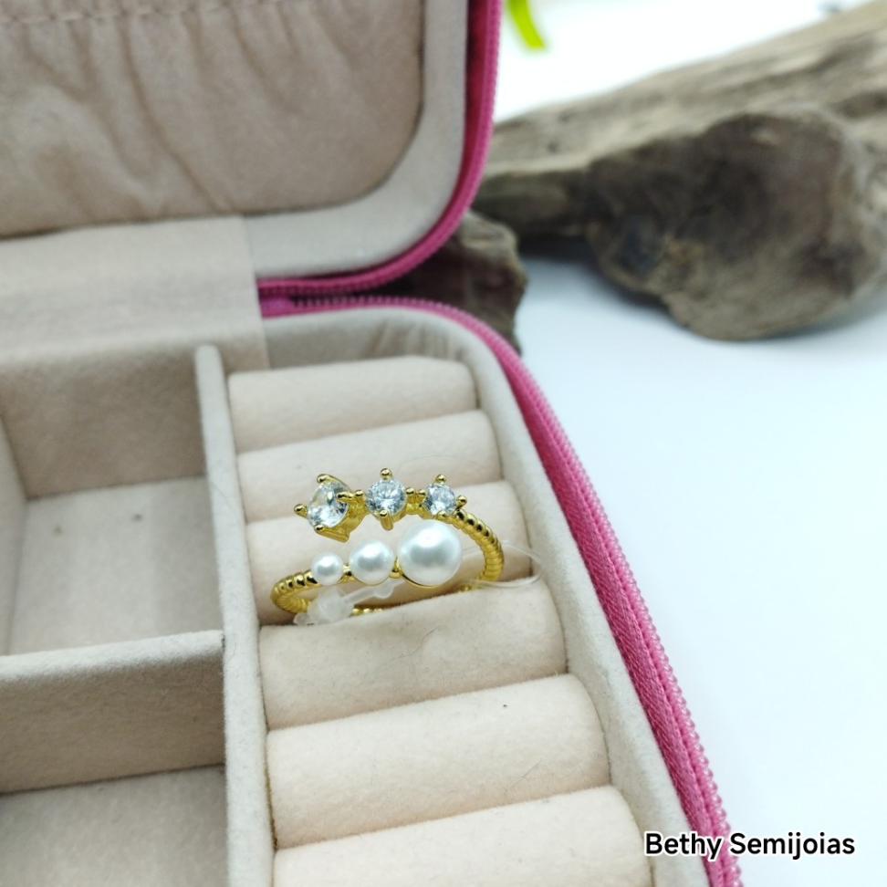 Anel Luxo Formato Seta cruzado no meio cravejado cristal