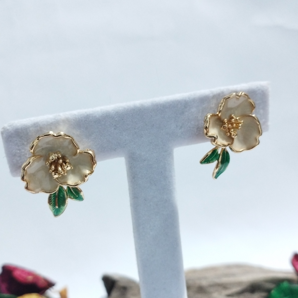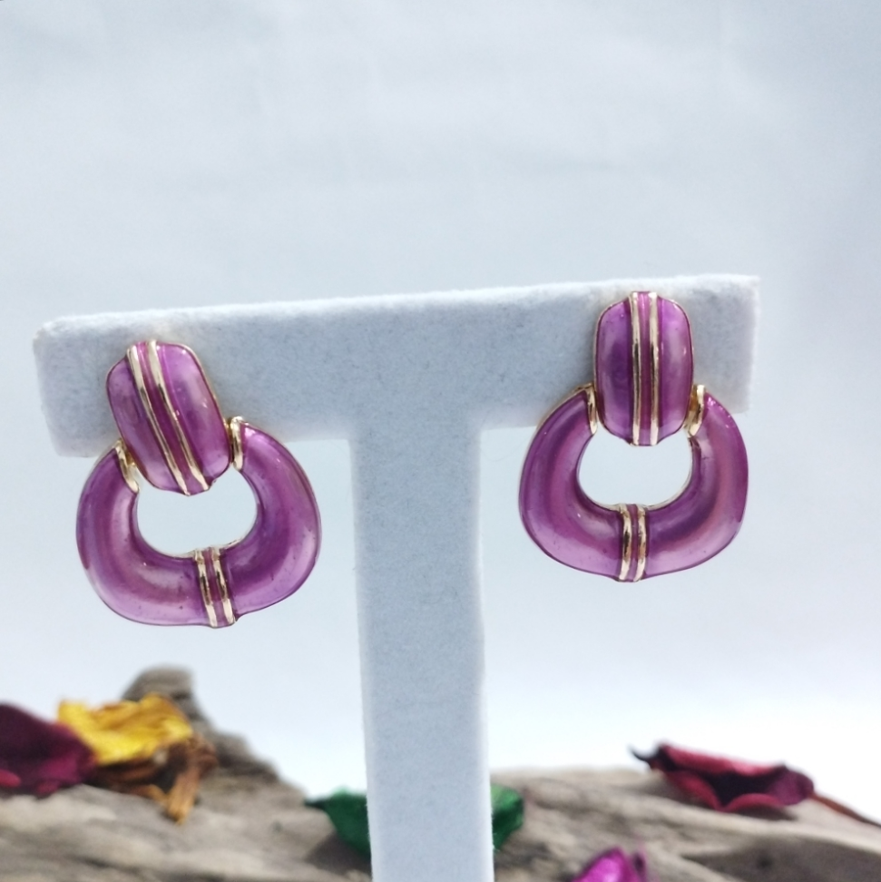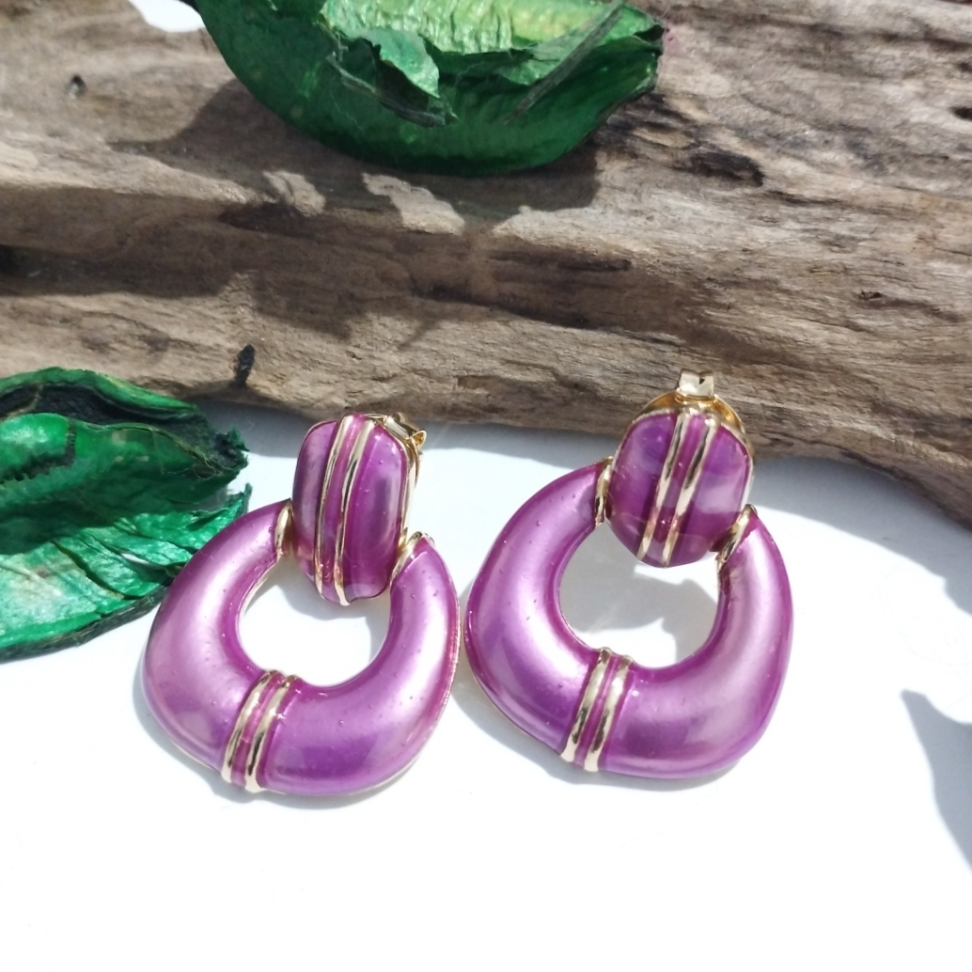 Brinco orquidea lilás esmaltado com detalhe dourado